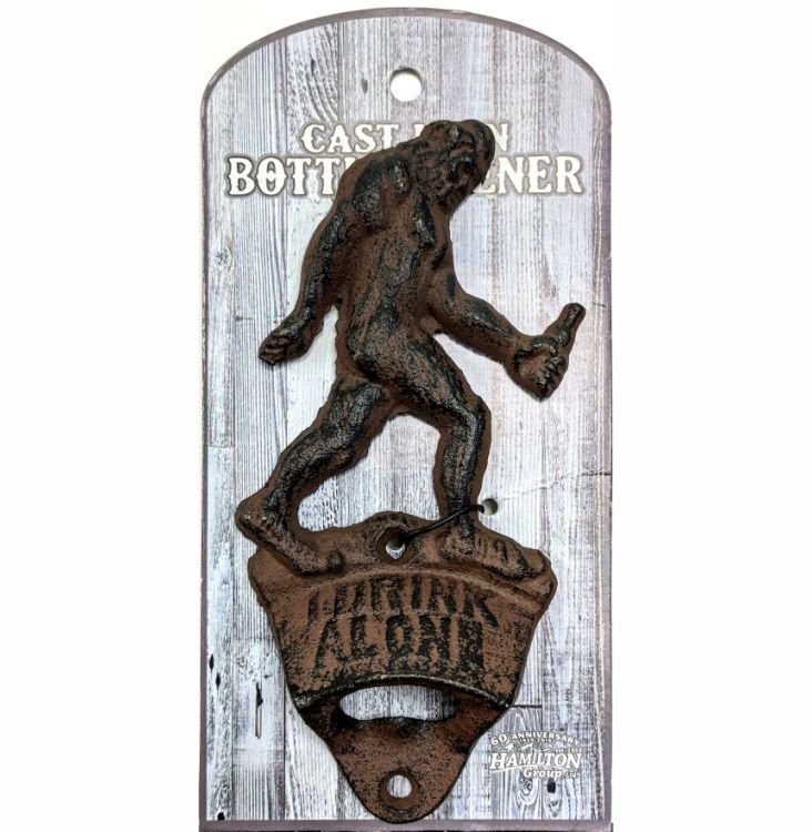 I Drink Alone Bigfoot Cast Iron Bottle Opener